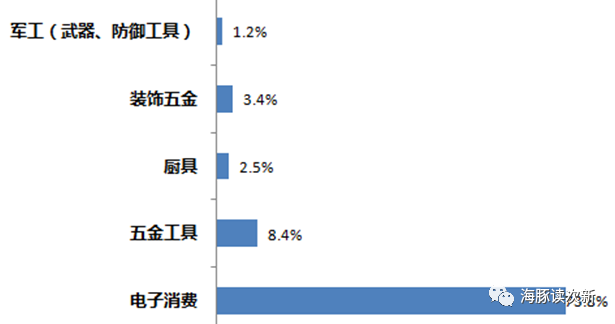 现阶段,我国 MIM 产品多以不锈钢及铁基合金粉末为原材料,超七成应用于消费电子领域。具体如下图