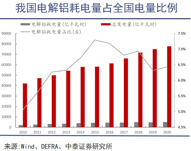 电解铝同时还是高排放产业,冶炼过程中的碳排放量曾约占我国碳排放总量的5%,仅次于钢铁和水泥。如此巨大的碳排量,是任何一个追求能源绿色化转型的国家都承受不起的。